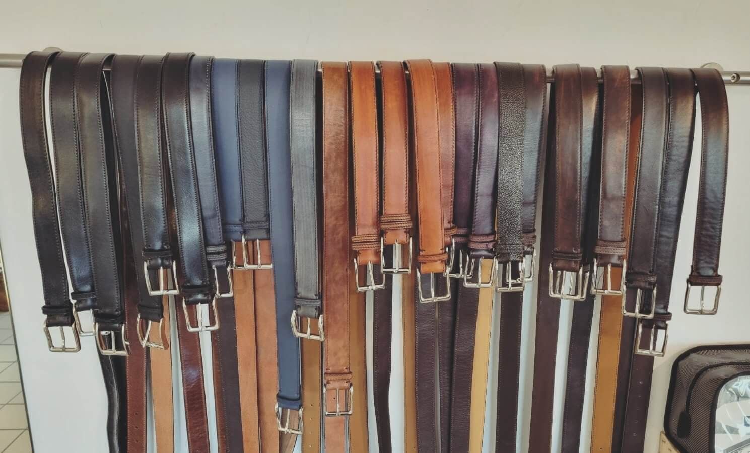 Calzoleria di Corradino produce cinture anche su misura lavorate a mano scegliendo con cura le pelli da utilizzare e le finiture da abbinare. Ogni modello può essere personalizzato con fibbie e dettagli a richiesta.